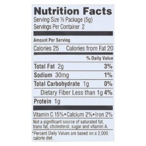 Gimme snacks, roasted seaweed teriyaki premium roasted is made with organic roasted seaweed, organic sesame oil, organic teriyaki powder and sea salt. Gimme has harvested a high quality seaweed and created a healthy, gluten-free, organic, non-gmo and vegan snack you will love. Each bag of seaweed chips contains a two-serving size of 0.35 ounces.