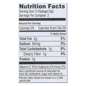 Gimme snacks, roasted seaweed sea salt premium roasted is made with organic roasted seaweed, organic sunflower oil and sea salt. Gimme has harvested a high quality seaweed and created a healthy, gluten-free, organic, non-gmo and vegan snack you will love. Each bag of seaweed chips contains a two-serving size of 0.35 ounces.