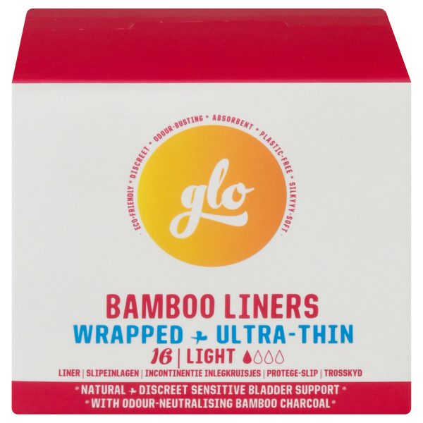 Vegan: vegetarian society approved. Eco-friendly. Discreet. Odour-busting. Absorbent. Silkyyy-soft. Liner. Natural + discreet sensitive bladder support. With odour-neutralising bamboo charcoal. Hello, gorgeous! fancy some 100% got-your-back bamboo liners? we all need a wee bit of backup at times, like when a sensitive bladder is on the scene. If some extra support for the food ‘ole pelvic floor fits the bill, look no further! glo liners are made absorbent organic bamboo + feature a unique charcoal core to smash odours. So you can laugh, sneeze + leap with confidence, naturally. Brilliant bamboo! fast-growing, greenhouse gas-absorbing, biodegrading, high oxygen-releasing, microbe-busting, soil-restoring, waste-reducing and strong-as-heck. What’s in these? 100% organic bamboo + corn fibre. Bamboo charcoal core. Biodegradable plant cellulose wrapper. 100% oops-laughed-too-hard! leak protection. No synthetic fibres, chlorine, dioxins, pesticide residues, plastics, artificial dyes or fragrances. 190 mm (l) liners, for sensitive bladders and light incontinence. Biodegradable and featuring absorbent organic bamboo odour neutralising charcoal + biodegradable plant-based wrappers. Say hiya online through our sister brand, flo. Twitter. Facebook. Instagram. (at)hereweflo http://hereweflo.co. 5% of our profits go to girls + women in need. We are proud to give back through brilliant charities like orchid project, who work to end female genital cutting (fgm) and bloody good period. Who provide personal & intimate care products for people on need. Stay bright. Stay brilliant. And most of all. Stay cheeky, glo-babies. Please do recycle this box! our pack + pads are made from plant-based, recyclable + biodegradable materials. Cruelty and vegan. Produced in china. Dreamed up + designed in hackney. London. Uk.