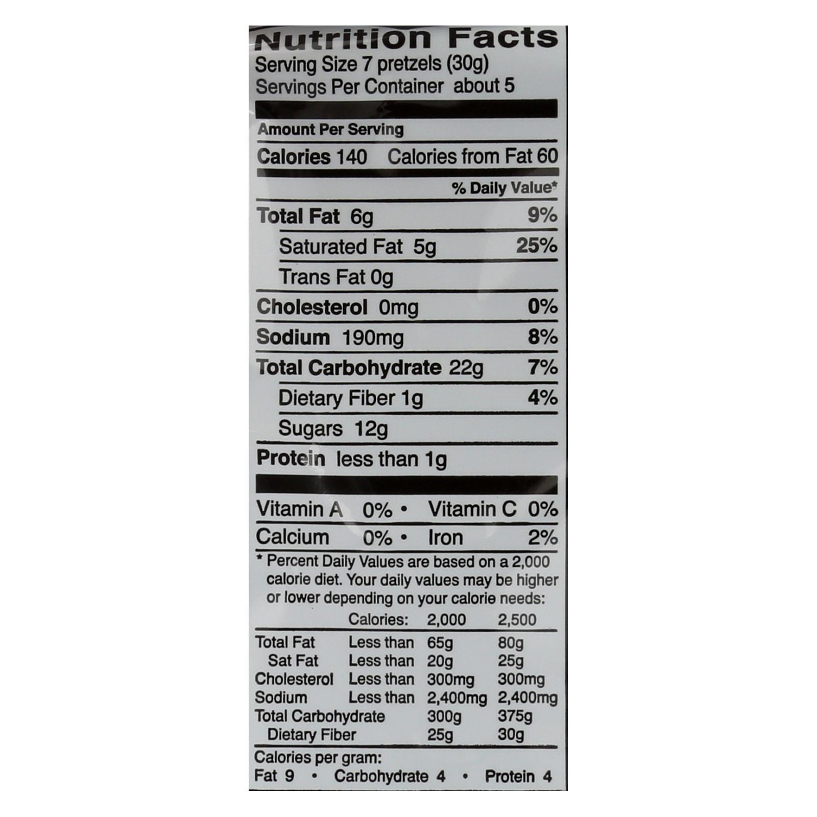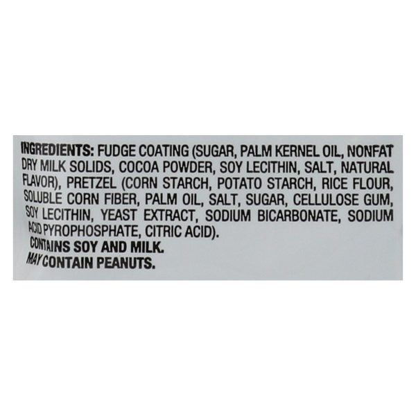 ingredients : fudge coating;sugar;palm kernel oil;nonfat dry milk solids;cocoa powder;soy lecithin;salt;natural flavor;pretzel;corn starch;potato starch;rice flour;soluble corn fiber;palm oil;cellulose gum;yeast extract;sodium bicarbonate;sodium acid pyrophosphate;citric acid