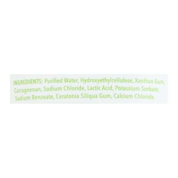 ingredients : purified water;hydroxyethylcellulose;xanthan gum;carrageenan;sodium chloride;lactic acid;potassium sorbate;sodium benzoate;ceratonia siliqua gum;calcium chloride