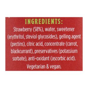 ingredients : strawberry;58%;water;sweetener;erythritol;steviol glycosides;gelling agent;pectins;citric acid;concentrate;carrot;blackcurrant;preservatives;potassium sorbate;antioxidant;ascorbic acid