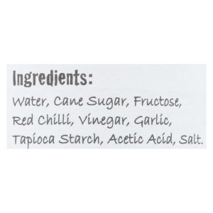 ingredients : water;cane sugar;fructose;red chilli;vinegar;garlic;tapioca starch;acetic acid;salt
