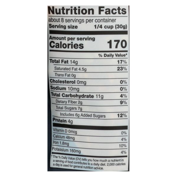 ingredients : organic unsweetened coconut;organic pumpkin seeds;organic sunflower seeds;organic coconut nectar;organic dark chocolate* (organic cane sugar, organic cocoa liquor, organic cocoa butter);organic sesame seeds;organic pecans;organic cashews;organic maple syrup;organic vanilla extract (water, organic alcohol, organic vanilla bean extractives)