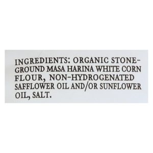 ingredients : organic stone-ground masa harina white corn flour;non-hydrogenated safflower oil and/or sunflower oil;salt