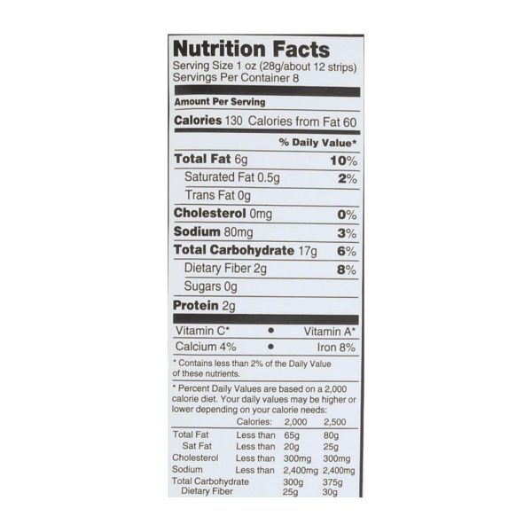 Green mountain gringo tortilla strips, organic white are the perfect dipping shape. This product is made from organic white corn and cooked in naturally non-hydrogenated oils before being topped with a pinch of salt. Green mountain gringo tortilla strips come packaged for your convenience in an easy-to-open bag that contains 8 oz. Of product.