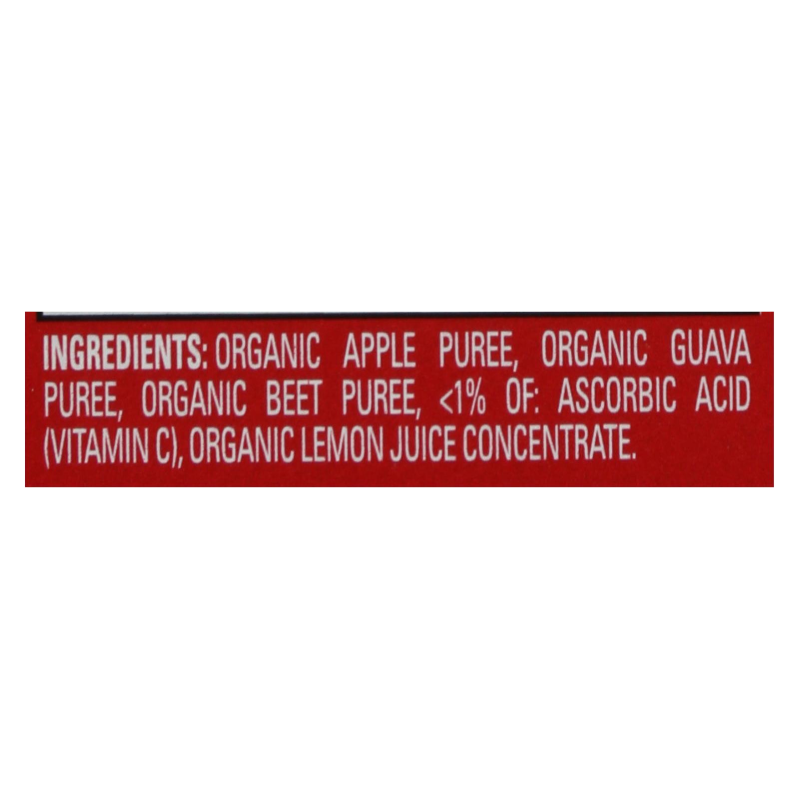 ingredients : organic apple puree;organic guava puree;organic beet puree;<1% of: ascorbic acid;vitamin c;organic lemon juice concentrate