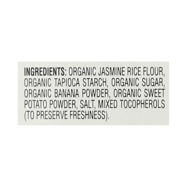 ingredients : organic jasmine rice flour;organic tapioca starch;organic sugar;organic banana powder;organic sweet potato powder;salt;mixed tocopherols (to preserve freshness)