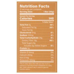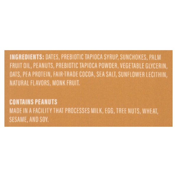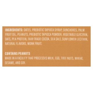 ingredients : prebiotic tapioca fiber;dates;jerusalem artichoke fiber;peanuts;palm kernel oil;oats;pea protein;vegetable glycerin;fair-trade cocoa;sunflower lecithin;salt;natural flavors;monk fruit