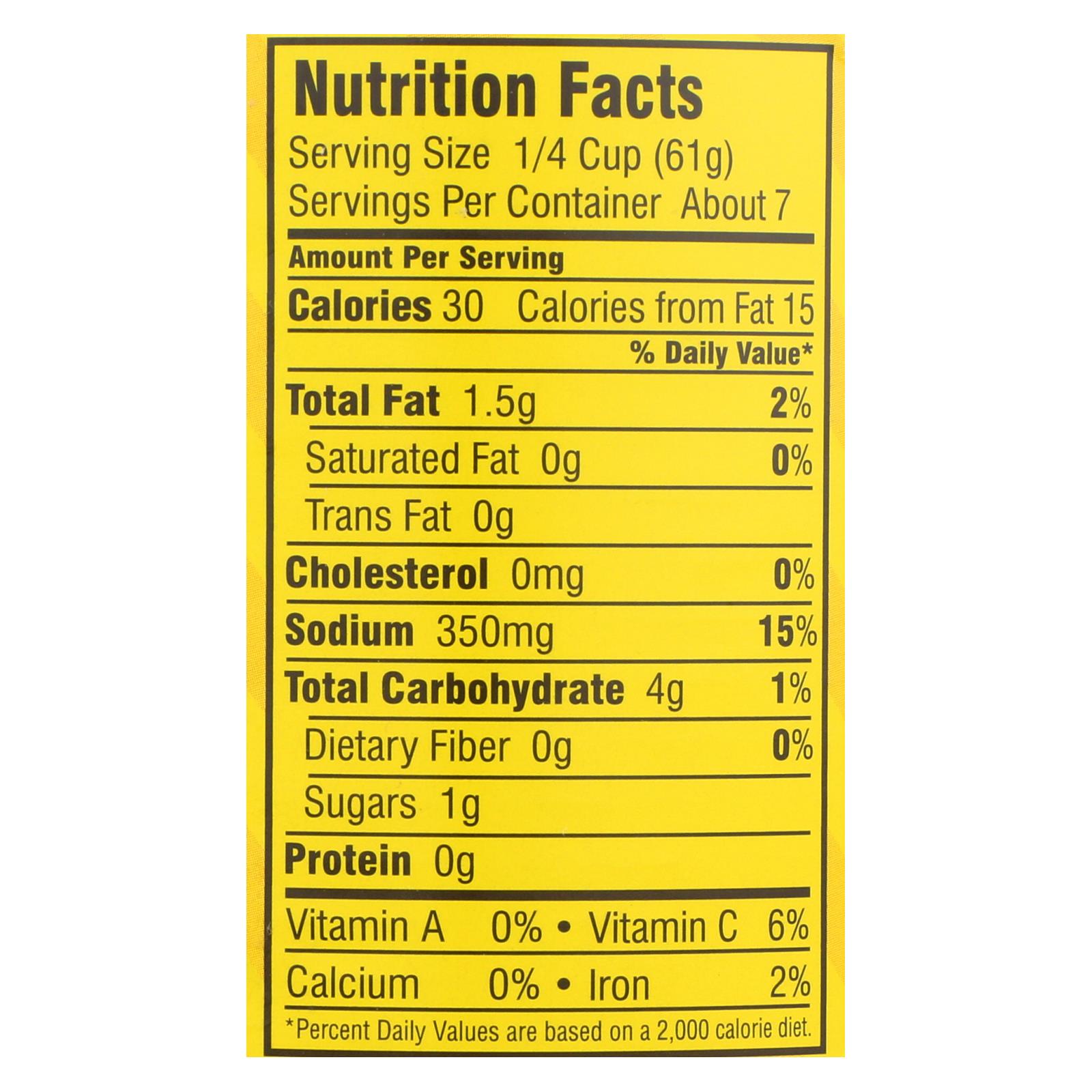 ingredients : water;green chile peppers;corn starch;canola oil;less than 2% of sugar;baker’s yeast (yeast, salt, natural flavor);sea salt;dehydrated jalapeno;onion powder;spice;citric acid;dehydrated green bell peppers;garlic powder