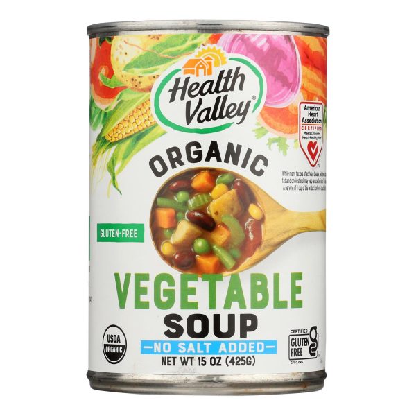 Health valley soup, organic vegetable no salt is a natural and delicious meal option. Made with natural ingredients, this soup is free of unnatural and unnecessary additives. This product is made with no added salt and is organic and heart healthy. Each can of health valley soup, organic vegetable no salt contains 15 oz. Of soup with two servings per can and 100 calories per serving.