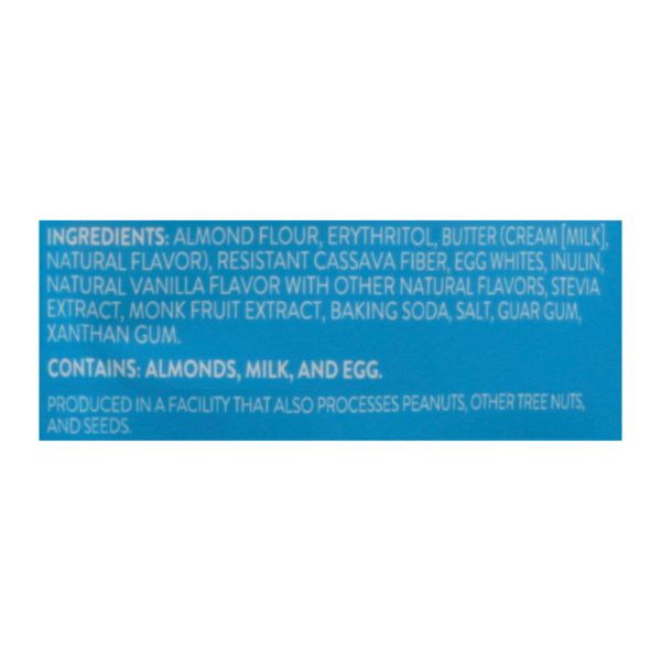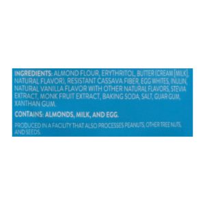 ingredients : almond flour;erythritol;butter (cream [milk], natural flavor);resistant cassava fiber;egg whites;inulin;natural vanilla flavor with other natural flavors;stevia extract;monk fruit extract;baking soda;salt;guar gum;xanthan gum