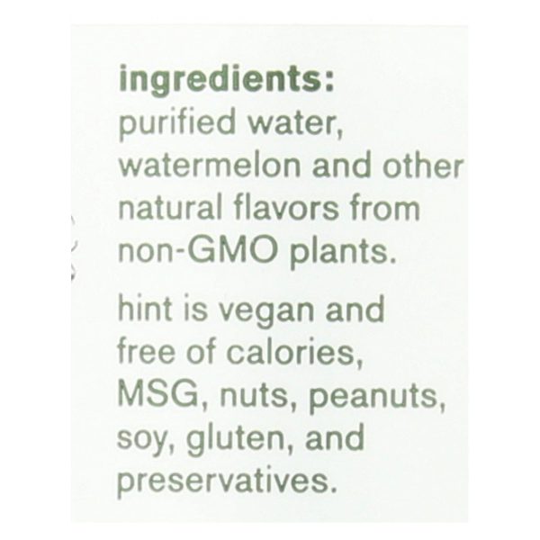 Hint unsweet water, watermelon is a natural, refreshing and delicious beverage. Made with natural ingredients, this fresh twist on water is pure and free of unnatural and unnecessary additives. This product is gluten-free, kosher and vegan friendly. Each bottle of hint unsweet water, watermelon contains 16 fl. Oz. Of water.