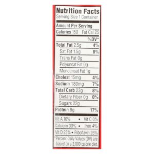 ingredients : grade a lowfat organic milk;organic cane sugar;organic cocoa (processed with alkali);organic cocoa;gellan gum;organic natural flavor;salt;vitamin a palmitate;vitamin d3