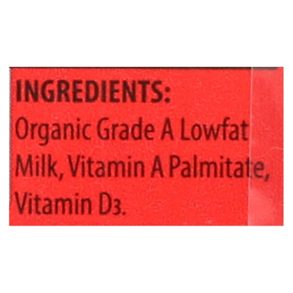 ingredients : grade a lowfat organic milk;vitamin a palmitate;vitamin d3