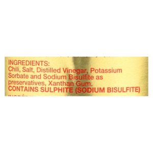 ingredients : chili;salt;distilled vinegar;potassium sorbate and sodium bisulfite as preservatives;xanthan gum