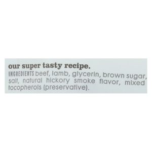 ingredients : beef;lamb;glycerin;brown sugar;salt;natural hickory smoke flavor;mixed tocopherols;a preservative