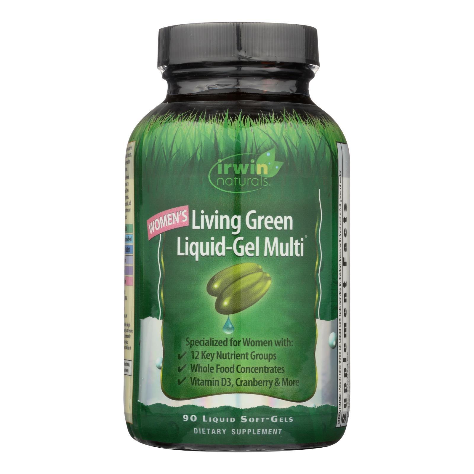 Irwin naturals living green, liquid-gel multi for women are dietary supplements targeted to benefit the unique nutrition profile of women. These easy-to-swallow softgels contain omega-3 fatty acids and are free from added preservatives. Each bottle of irwin naturals living green, liquid-gel multi for women contains 90 liquid softgels of product.