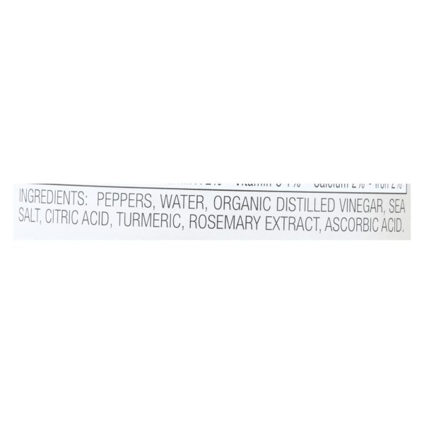 ingredients : peppers;water;organic distilled vinegar;sea salt;citric acid;turmeric;rosemary extract;ascorbic acid