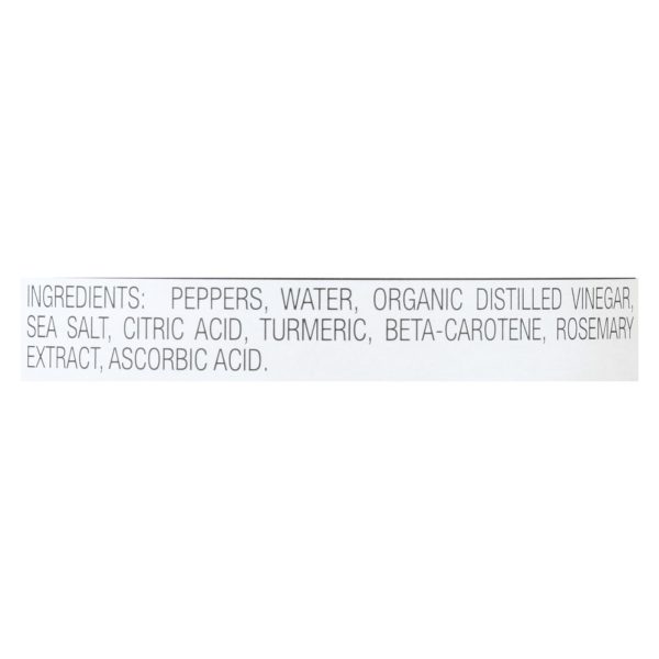 ingredients : peppers;water;organic distilled vinegar;sea salt;citric acid;turmeric;beta-carotene;rosemary extract;ascorbic acid