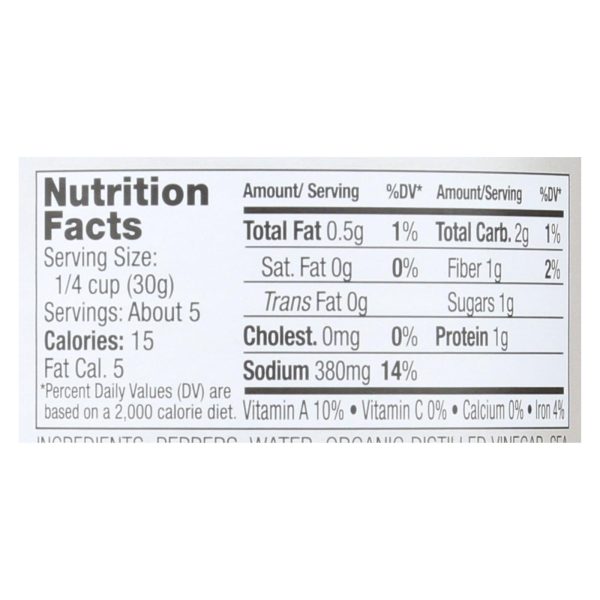 ingredients : peppers;water;organic distilled vinegar;sea salt;calcium chloride