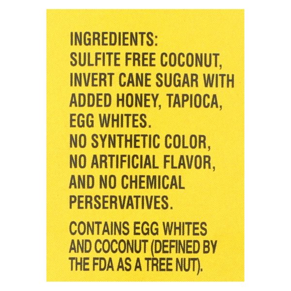 ingredients : sulfite free coconut;invert cane sugar;tapioca starch;egg whites;honey