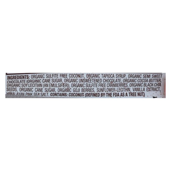 Jennies raw organic coconut bars are made with goji berries, chia seeds, cranberries and chocolate for a delicious on-the-go energy boost. This bar is gluten-free, peanut free, kosher and certified organic by pco. They make a great choice for a variety of diets and each 1.5 oz. Bar has 190 calories and 0 g. Of trans fats.