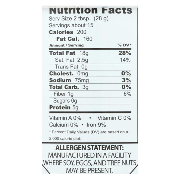 Joyva roasted sesame tahini is an all-natural creamy puree of sesame seeds that has a light nut-like flavor. Each 15 oz. Container provides 15 servings of about 2 tbsp. Each. Each serving has 200 calories, 5 g. Of protein and 1 g. Of dietary fiber. Our tahini contains no additives or emulsifiers. See nutrition panel for allergens.