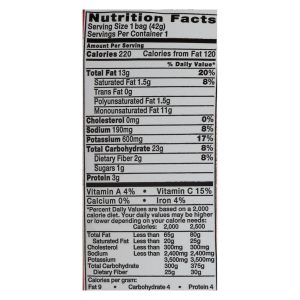 Kettle brand backyard barbecue potato chips get their great taste from paprika, onion, garlic and chili pepper seasonings, making them a flavorful addition to your school lunch or picnic basket. This single-serve 1.5 oz. Bag of chips contains no trans fat or cholesterol and adds 3 g. Of protein to your diet. We guarantee its freshness through the best-before date.