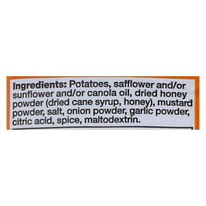 ingredients : potatoes;safflower and/or sunflower and/or canola oil;dried honey powder;dried cane syrup;honey;mustard powder;salt;onion powder;garlic powder;citric acid;spice;maltodextrin