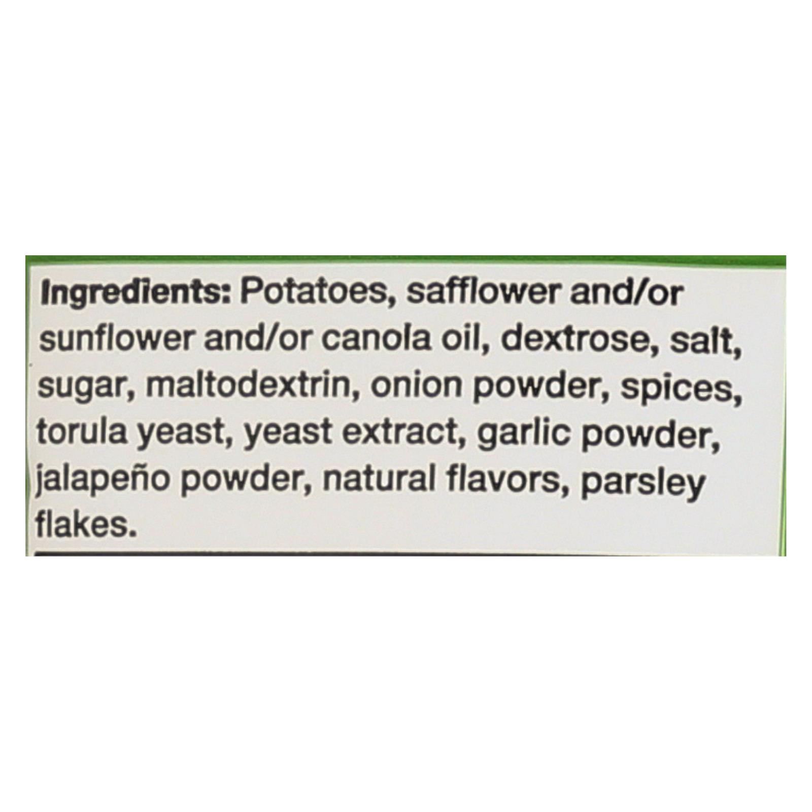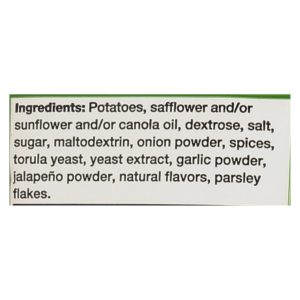 ingredients : potatoes;safflower and/or sunflower and/or canola oil;dextrose;salt;sugar;maltodextrin;onion powder;spices;torula yeast;yeast extract;garlic powder;jalapeño powder;natural flavors;parsley flakes