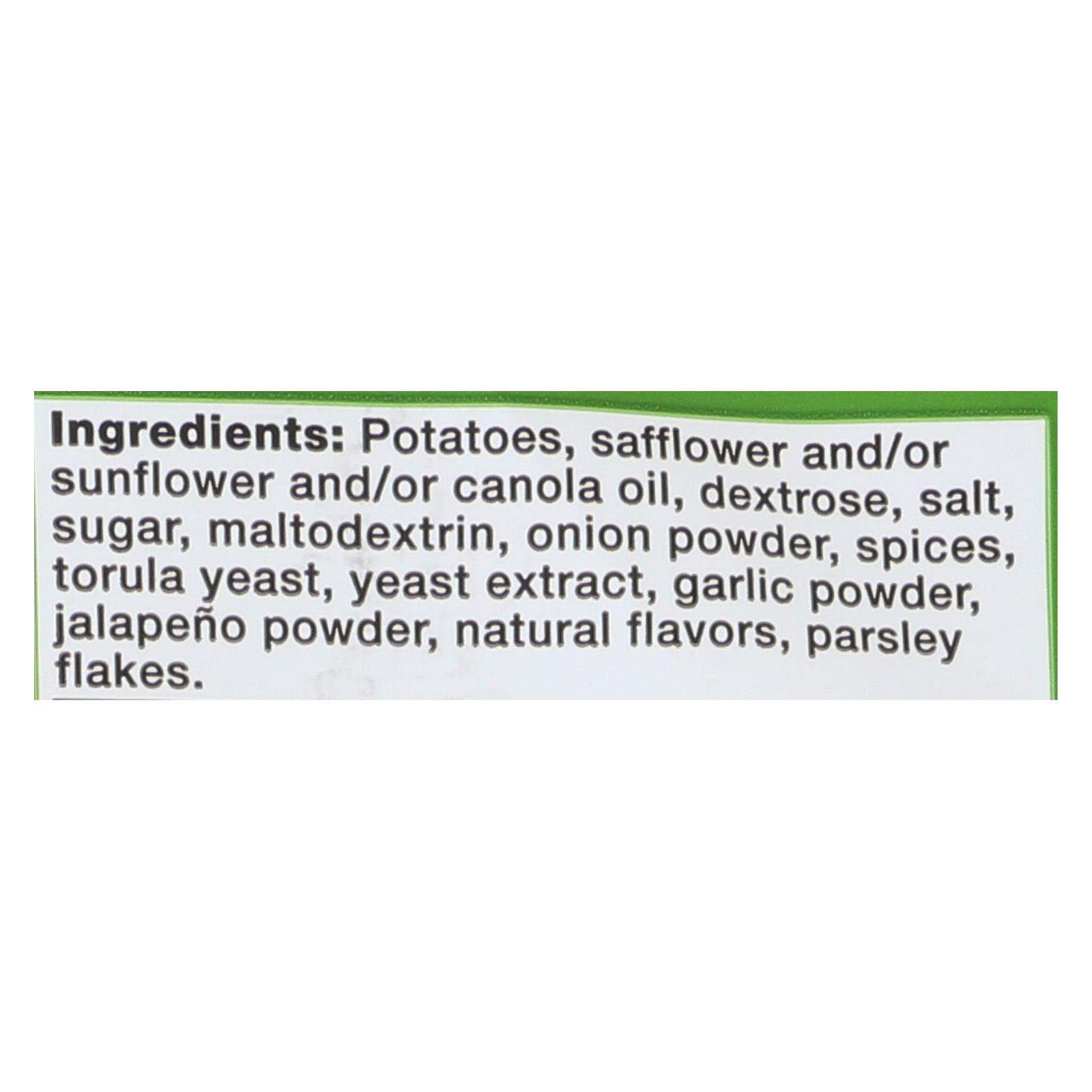 ingredients : potatoes;safflower and/or sunflower and/or canola oil;dextrose;salt;sugar;maltodextrin;onion powder;spices. Torula yeast;yeast extract;garlic powder;jalapeño powder;natural flavors;parsley flakes