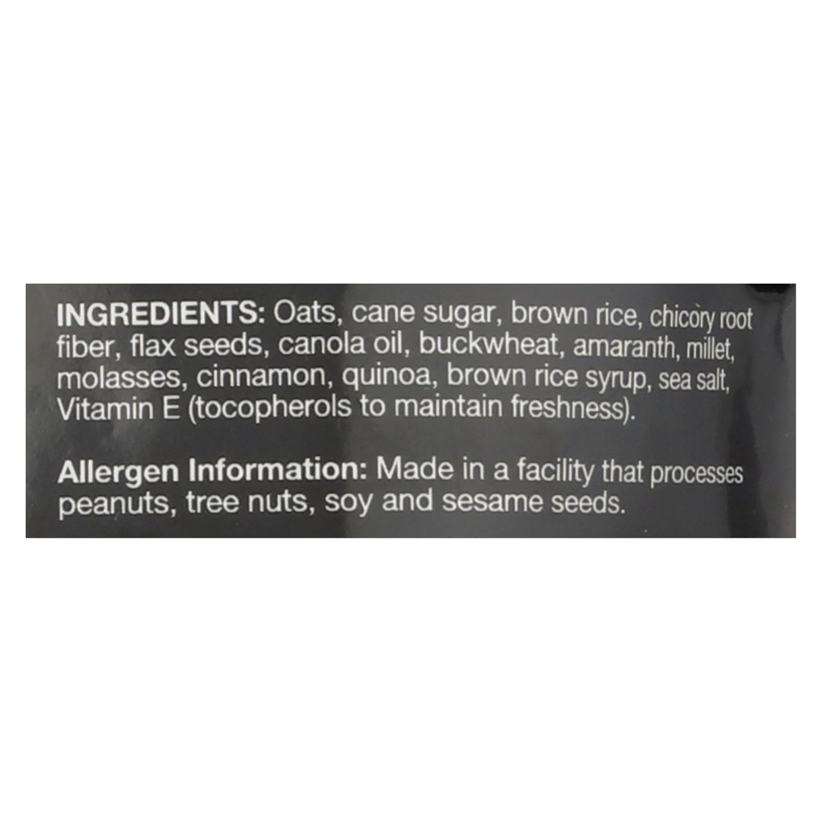 ingredients : oats;cane sugar;brown rice;chicory root fiber;flax seeds;canola oil;buckwheat;amaranth;millet;molasses;cinnamon;quinoa;brown rice syrup;sea salt;vitamin e;tocopherols to maintain freshness