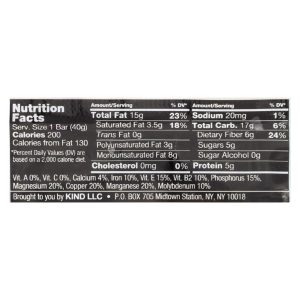 Kind dark chocolate almond mint nuts and spices bar is a treat for the individual on the go. With only 5g of sugar and 0g of trans fats per serving, our clusters are the kind thing to do for your body, your taste buds, and your world. Our snack bar is also low sodium and completely kosher, as well as completely gluten-free and gmo-free. With ingredients that you can see and pronounce, you can be sure you can trust and taste kind snacks. Included is one 1.4 oz. Packet of kind dark chocolate almond mint nuts and spices bar.