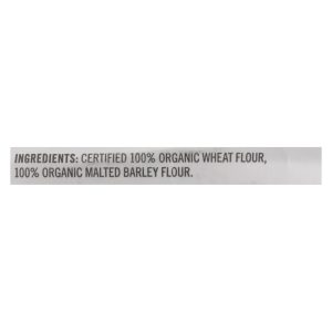 ingredients : certified 100% organic unbleached hard red wheat flour;certified 100% organic malted barley flour