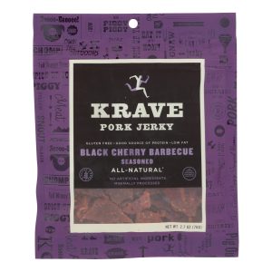 Krave black cherry barbecue pork jerky is one of our most popular flavors. The seasoning offers up a finger-licking good taste from the heart of the wine country. We infuse tender slices of pork with our sweet and peppery black cherry barbecue sauce. The result is a delicious jerky that will leave you krave-ing more. One serving of jerky has packed with 9 g. Of protein. This snack is gluten-free and nitrite-free. Includes one 2.7 oz. Bag of black cherry barbecue pork jerky. From the celebrated vineyards, coveted micro-climates and renowned gourmet outposts of california wine country comes, of all things, krave. Founded in 2009, krave is a leading producer of artisanal-style meat and poultry snacks, located in sonoma, ca. The ingredients we use are the same you’d find in your local market. Because that’s what health-conscious foodies want. And that’s how things are done where we come from.