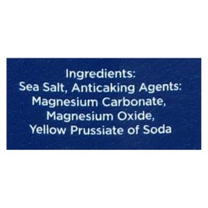 ingredients : sea salt;anticaking agents: magnesium carbonate;magnesium oxide;yellow prussiate of soda