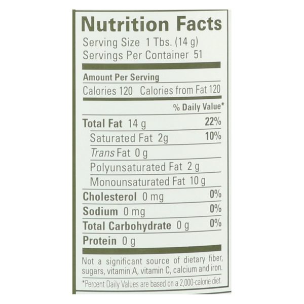 La tourangelle’s organic extra virgin olive oil is 100% organic extra virgin olive oil that’s cold-pressed from picual olives, harvested early in the season in andalusia, spain and processed on-site the same day. This process keeps their naturally high antioxidant levels and yields a wholesome, well-balanced extra fresh oil that’s ideal for daily cooking. The result is a well-balanced, intense and fruity extra virgin olive oil with hints of freshly cut grass, almond and fresh olive leaves and a peppery finish. Our 100% organic extra virgin olive oil is star-k kosher certified, non-gmo project verified and uses usda organic certified picual olives. Included is one 25.4 fl. Oz. Canister of organic extra virgin olive oil that has a medium-high cooking heat and is high in antioxidants. See nutrition facts panel for allergens.