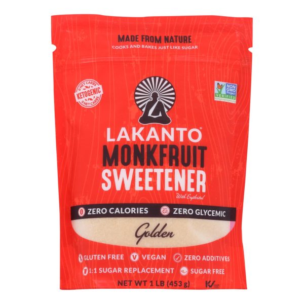 Lakanto monkfruit sweetener with erythritol tastes, cooks and bakes like sugar, but is actually a zero-glycemic, zero-calorie sweetener. Because monkfruit sweetener boasts a 1:1 replacement ratio, it incorporates seamlessly into your favorite cooked and baked goods recipes. Also tasty in coffee, tea and other types of beverages, this 1 lb. Bag of non-gmo monkfruit sweetener comes equipped with a resealable zipper that keeps the product safe and fresh between uses.
