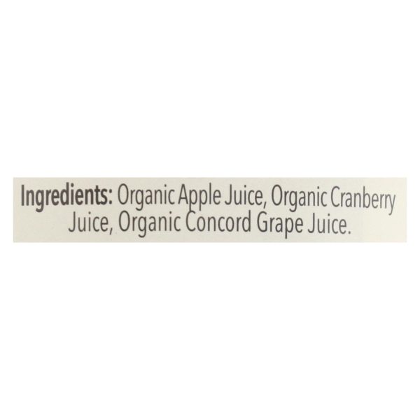 ingredients : organic apple juice;organic cranberry juice;organic concord grape juice