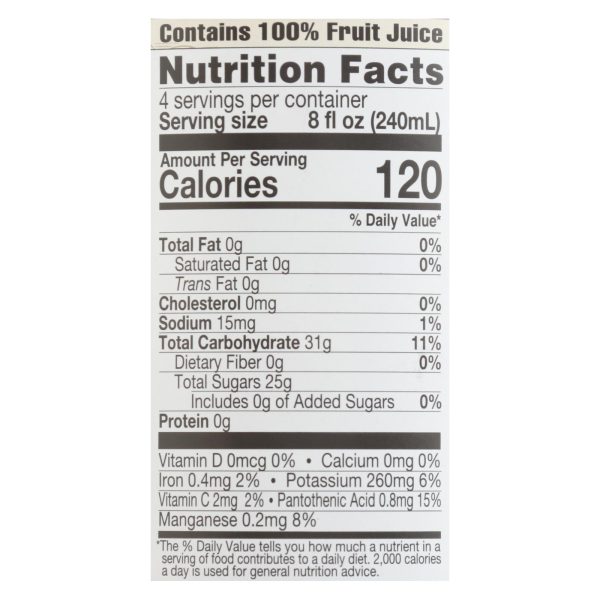 Lakewood organic cranberry flavored 100% juice blend is a delectable beverage made with organic apple juice, organic cranberry juice and organic concord grape juice. This 32 fl. Oz. Juice blend has no additives, no preservatives and is unsweetened with 0 g. Of added sugar. Naturally gluten-free, this non-gmo juice is also casein fee with only 120 calories and 260 mg of potassium per serving.