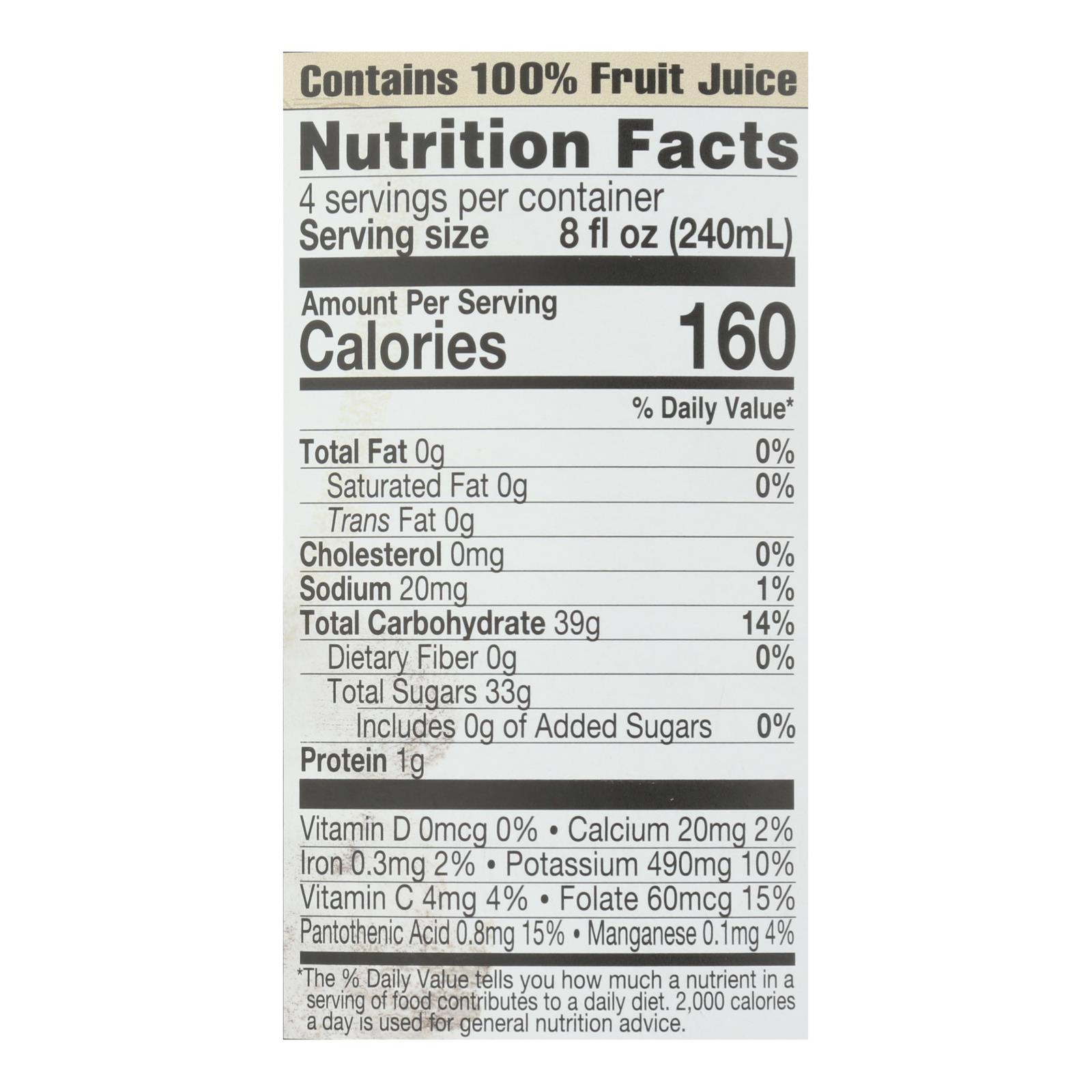 Lakewood organic pure pomegranate juice is fresh pressed from organic pomegranates, pasteurized and bottled with no added ingredients to give you authentic, refreshing taste with every sip. There is no fat, cholesterol or added sugar in this juice, and each serving is 160 calories. This 32 fl. Oz. Bottle makes four servings.