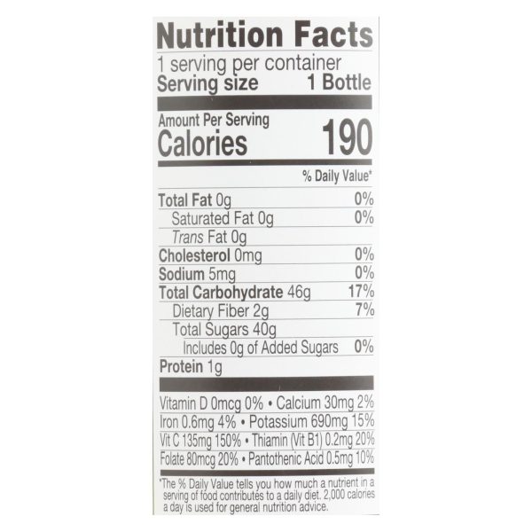 100 percent juice blend, fresh pressed, not from concentrate, kosher certified by kofk, choose glass nontoxic and bpa, bps and dehp free.