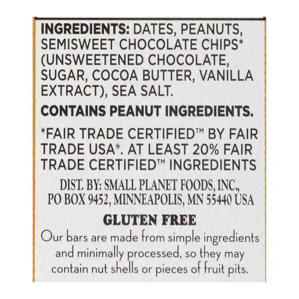 ingredients : dates;peanuts;semisweet chocolate chips* (unsweetened chocolate, sugar, cocoa butter, vanilla extract);sea salt