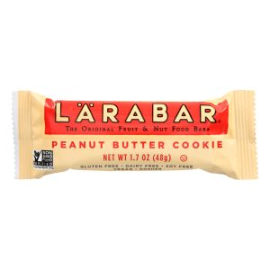 Larabar’s peanut butter cookie bar is made with just 3 ingredients: dates, peanuts and sea salt. Our vegan friendly peanut butter cookie bars are made with ingredients that are non-gmo project verified, gluten-free and have no added sugars. We use ingredients that are orthodox union kosher certified and free of cholesterol, dairy and soy. Each bar is a single serving and has no trans fats. Included is one 1.7 oz. Peanut butter cookie bar. See nutrition facts panel for allergens.