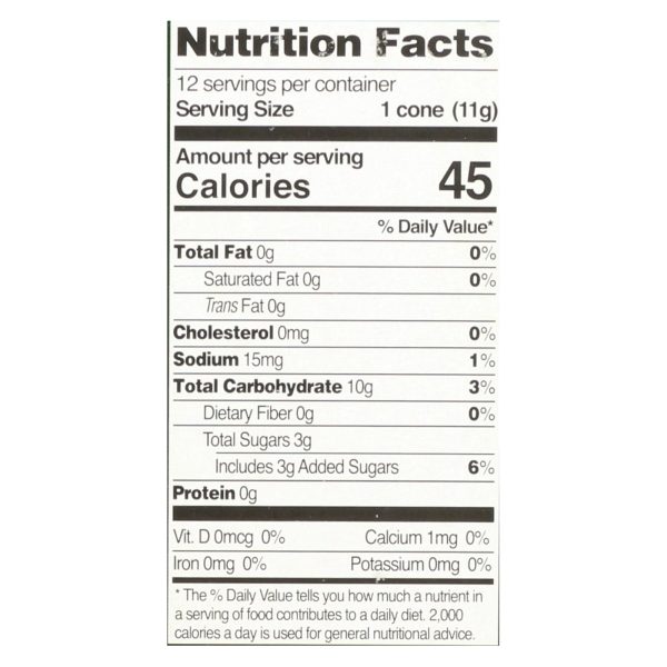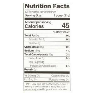 Let’s do… gluten free sugar cones are our traditional-style rolled cones that come in a 4.6 oz. Box. Each box has 12 vegan friendly cones that are certified gluten-free. Our sugar cones are non-gmo project verified and orthodox union kosher certified. Each cone has 45 calories and are free of trans fat.
