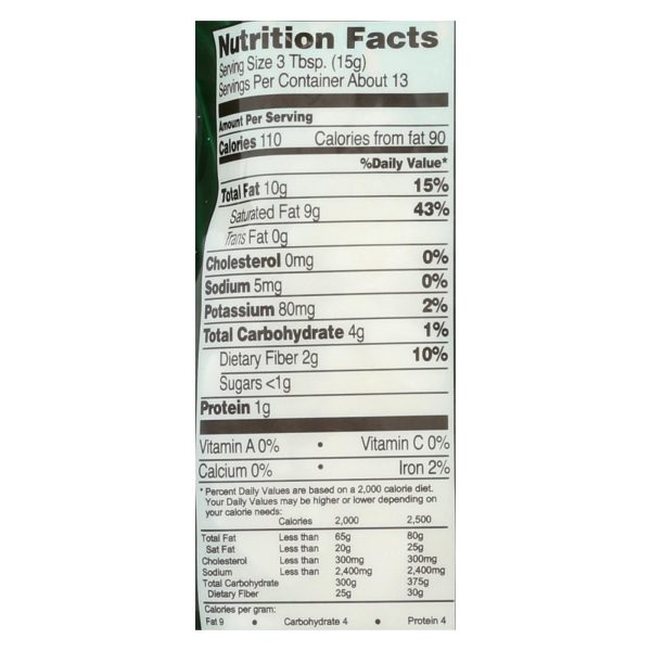 Let’s do… organic coconut flakes are our gluten-free and vegan friendly flakes that are unsweetened and free of trans fat. They’re usda organic and heart k kosher certified. There are 110 calories per serving and each 7 oz. Bag has 3-1/2 cups of flakes that breaks down to 13 servings. They make a perfect topping to your favorite dishes and baked goods.