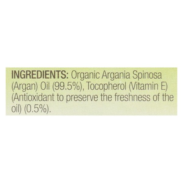 ingredients : organic argania spinosa;argan;oil;99.5%;tocopherol;vitamin e;antioxidant to preserve the freshness of the oil;0.5%
