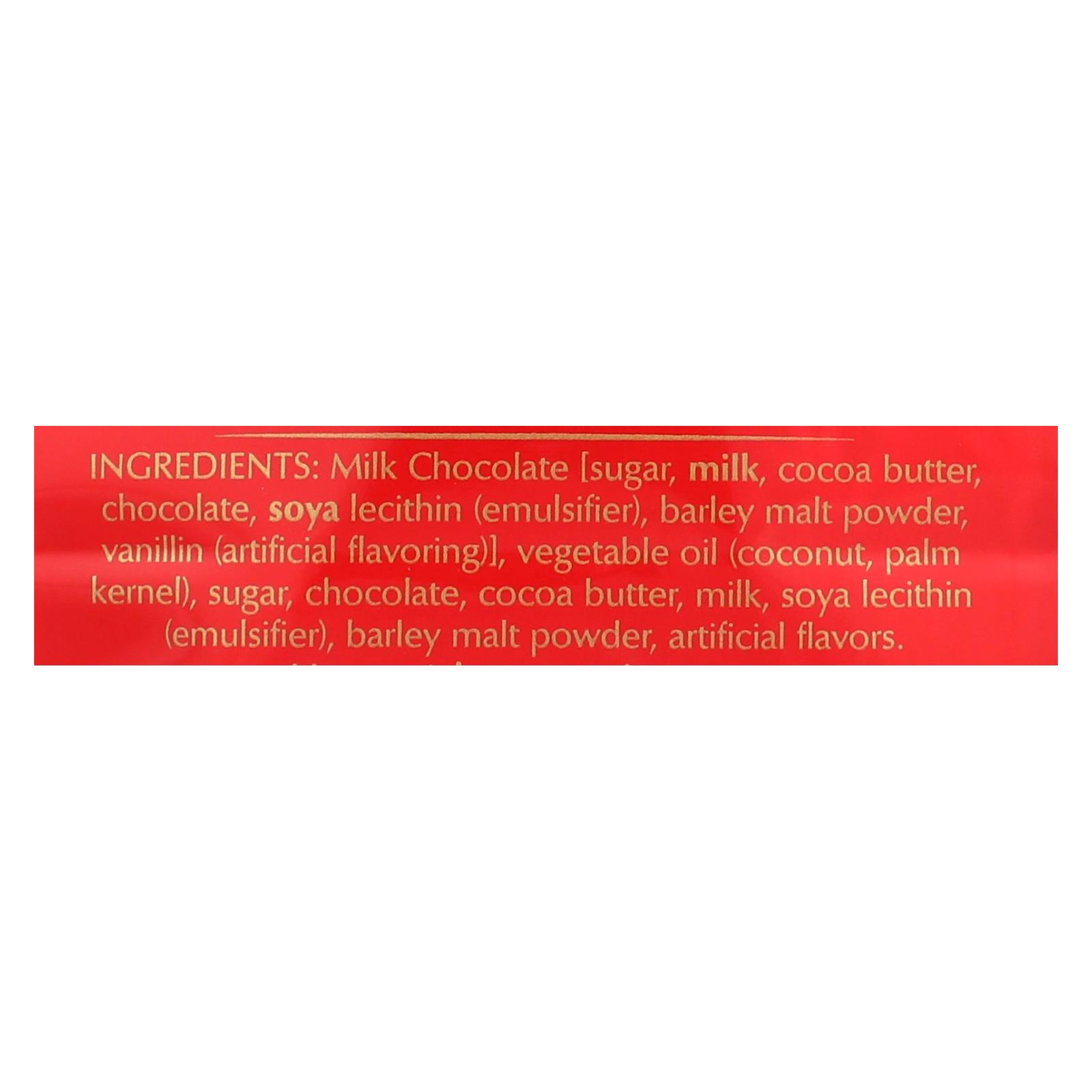 Lindt lindor milk chocolate truffles provide portable, perfectly sized portions of rich milk chocolate. This festive red bag from the iconic master swiss chocolatier contains nothing but individually wrapped, bite-sized orbs of milk chocolate pleasure in the form of a delicate shell surrounding a rich truffle center. Each three-ball serving in this 5.1 oz. Bag provides 6% of your daily value of calcium and 2 g. Protein.