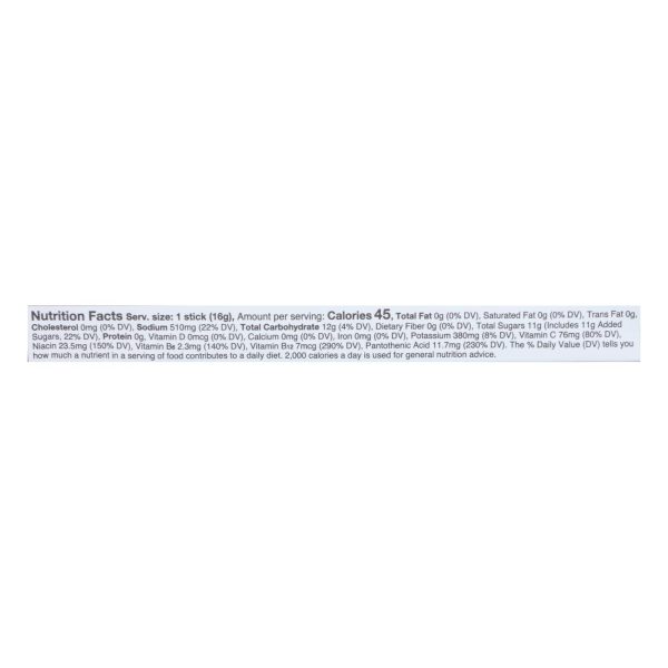 ingredients : pure cane sugar;dextrose;citric acid;salt;potassium citrate;sodium citrate;dipotassium phosphate;silicon dioxide;rebaudioside-a (stevia leaf extract);natural acai flavor;vitamin c (ascorbic acid);vitamin b3 (niacinamide);vitamin b5 (d-calcium pantothenate);vitamin b6 (pyridoxine hydrochloride);vitamin b12 (cyanocobalamin)